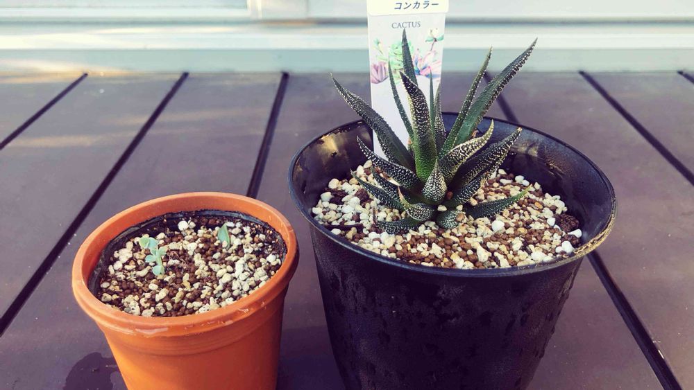 左の多肉は葉っぱから発根していたのでついでに🌱なんて言うのか分からないけど葉っぱごと植えちゃった💦