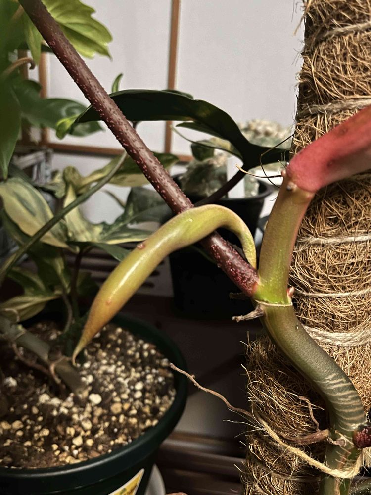 家のフィロデンドロンのフロリダビューティーですが、変な形の新芽が出てきたのですが、もしかして花が咲くのかな🌼