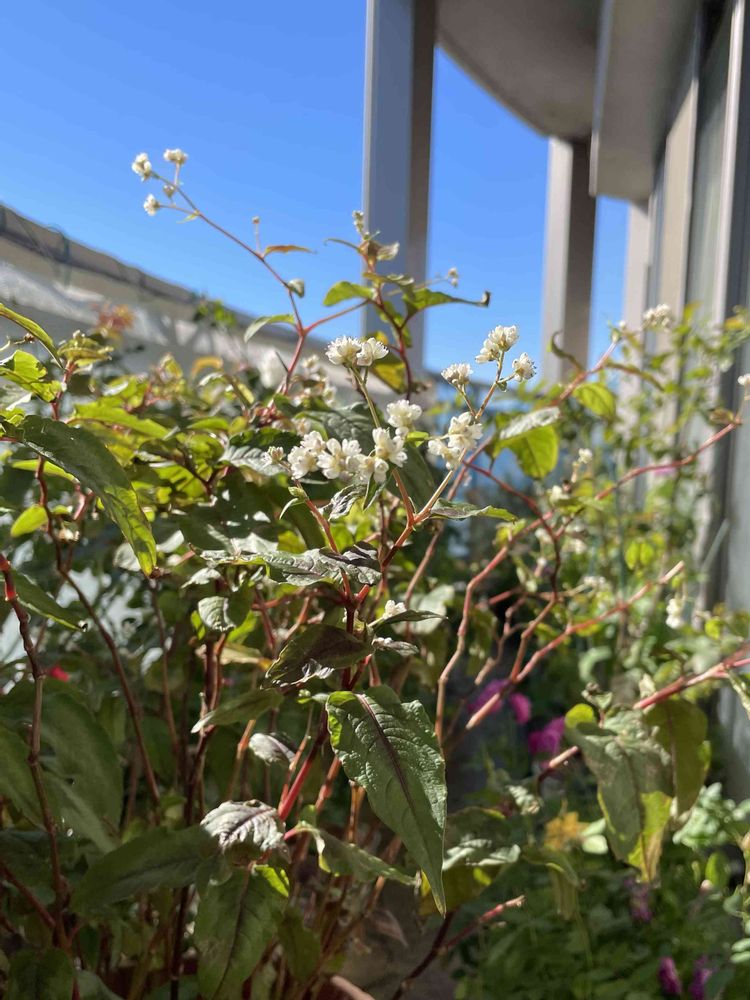 11/19 ペルシカリアレッドドラゴンの白い花💕6月頃にも咲きますが、多分今の時期が一番沢山咲くのかも。広がり過ぎて全体が写せません。