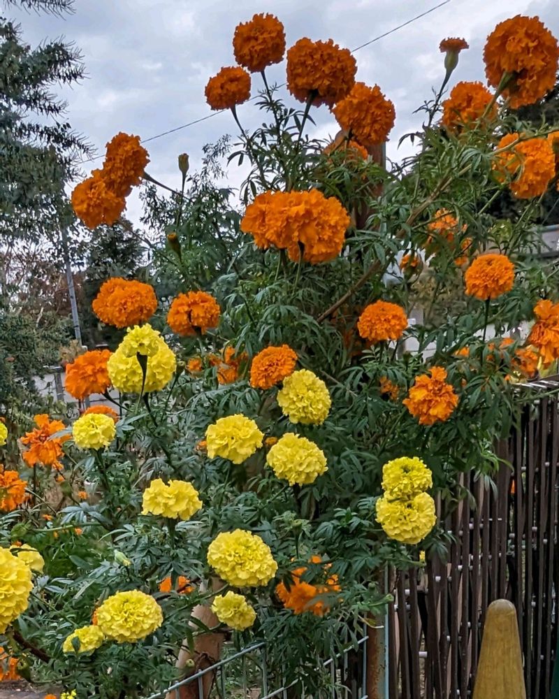 オレンジとイエローのマリーゴールドこんなに大きくなるのですネ