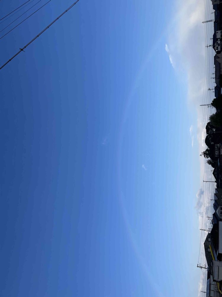 ⑤ 朝の散歩途中で空を見上げたら虹が出ていました。うっすらと❣️。😅🎶