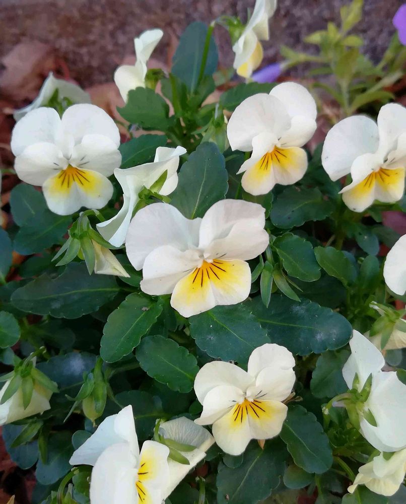 キバナコスモスも寒い中咲いていますね。ビオラも白色が綺麗✨ですね。たくさんお花が見れるとお散歩が楽しく😃🎶なりますね。