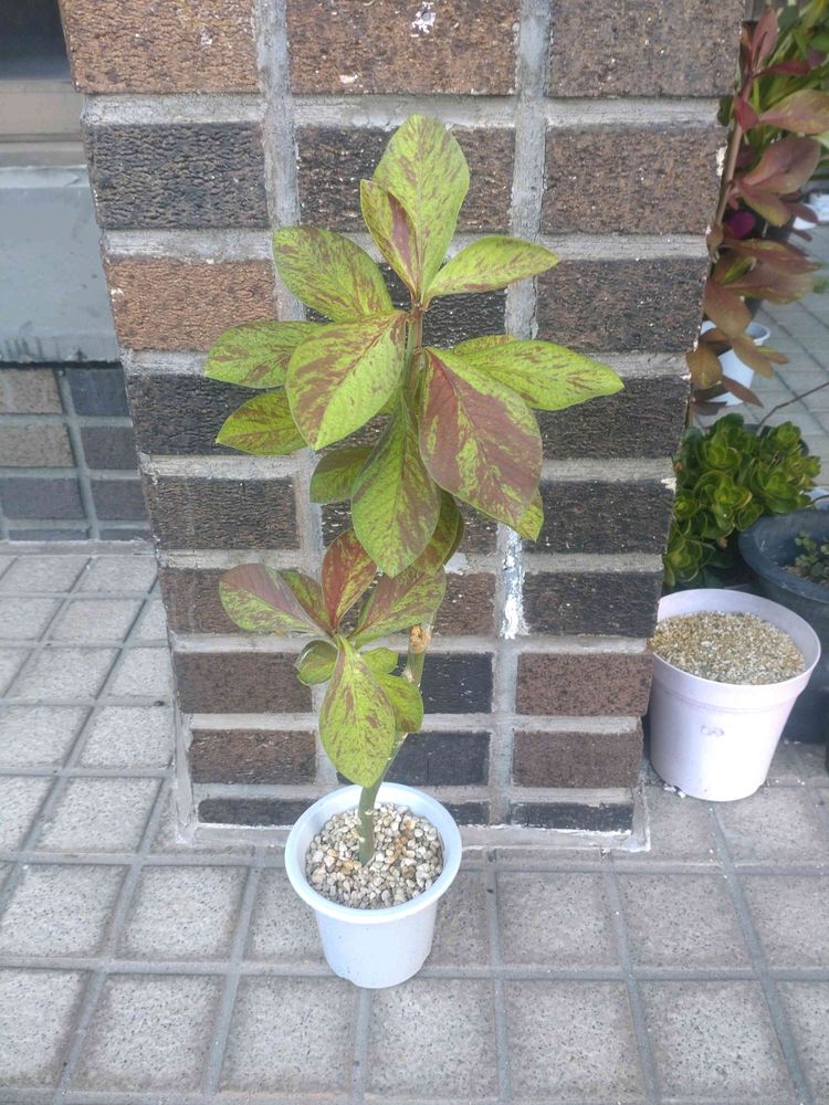今夏、挿木して成功した子ですが、同じように挿木した子とは違った葉の色でした。