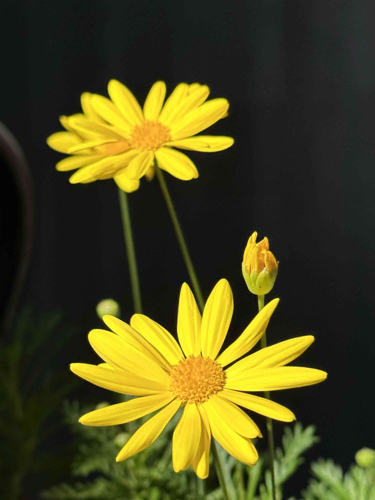 花茎を長く伸ばして綺麗に咲いてくれたユリオプスデイジー