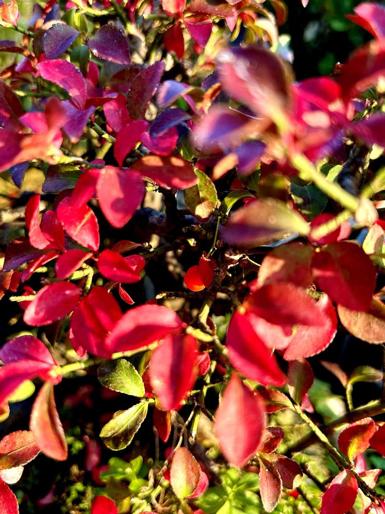 小庭のマユミはコマユミ盆栽です。ちょうど紅葉真っ盛り、葉が散ると赤い実🎈が残りますが今年は少なそう💦