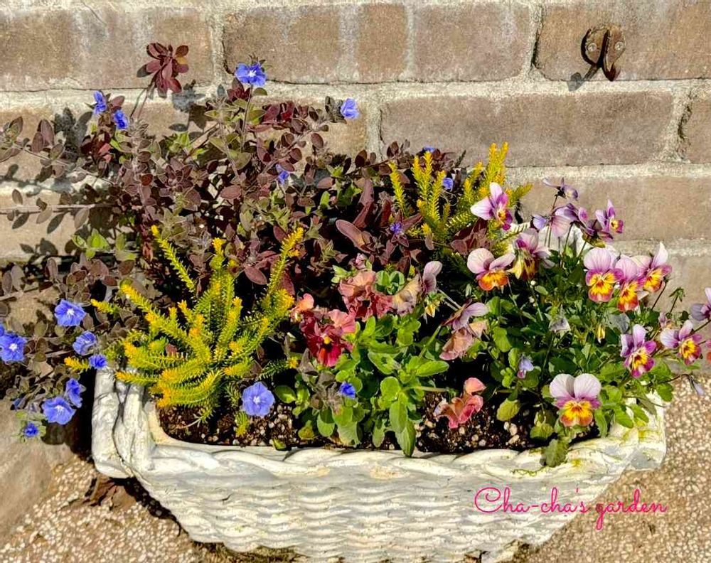春からの寄せ植えにあの時のビオラ達を入れてまとまりました( 'ω' و)و "