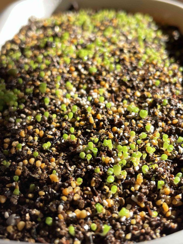 間引かなきゃと思ってトライしたのですが、細い根っこが結構深くまで伸びていて、抜こうとすると切れちゃうので諦めました。笑