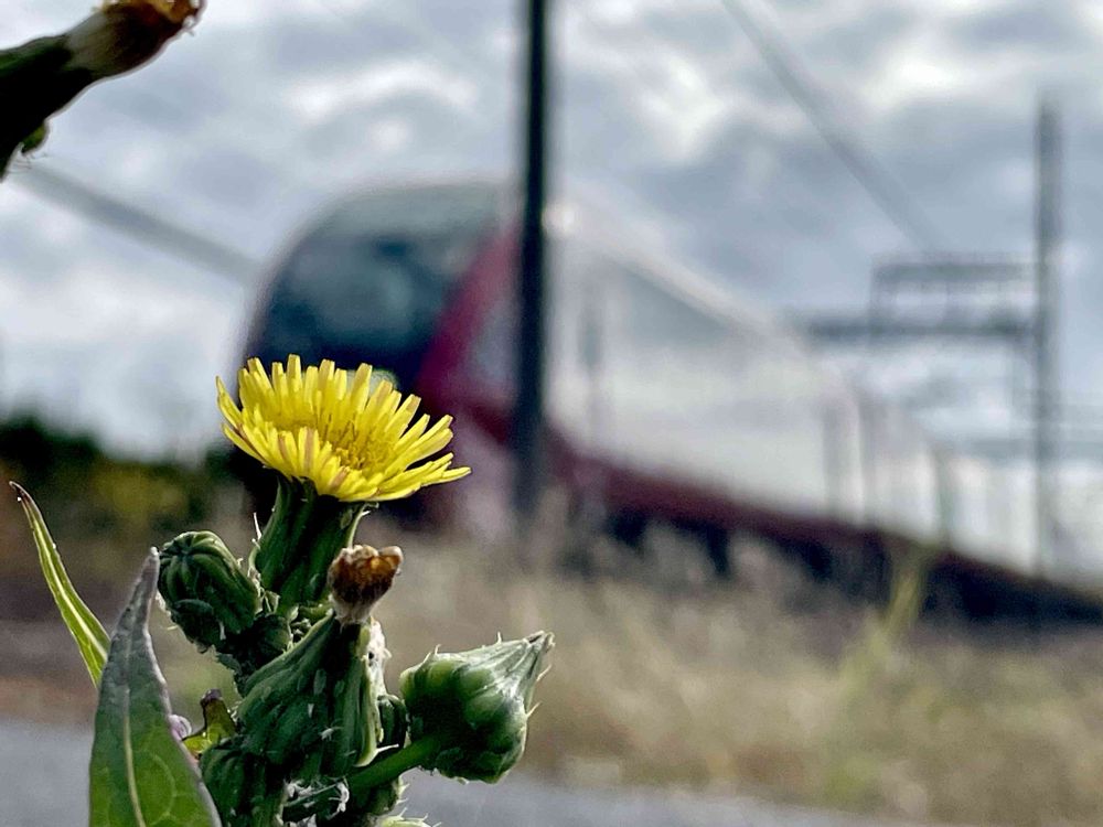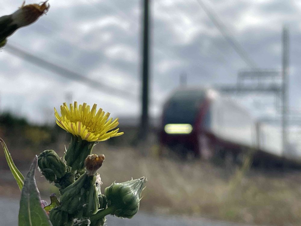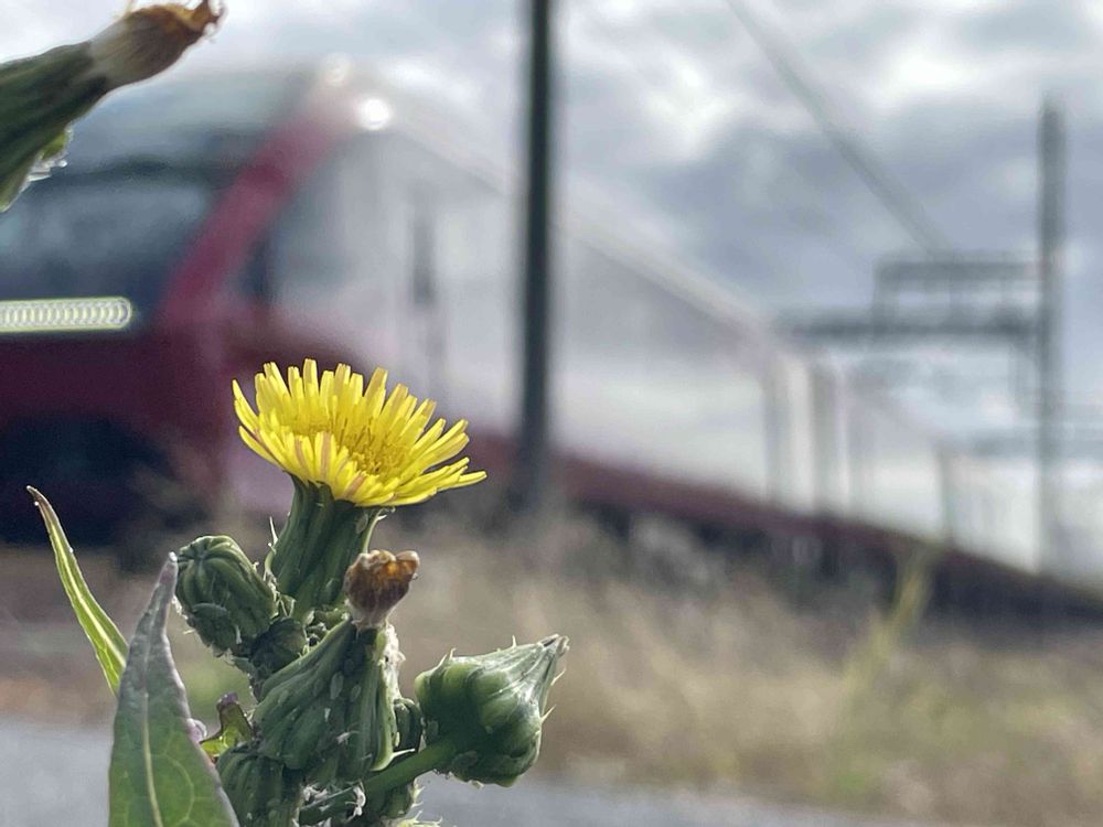 🌼たんぽぽ※と真っ赤な🚄近鉄特急ひのとりのコラボ😉