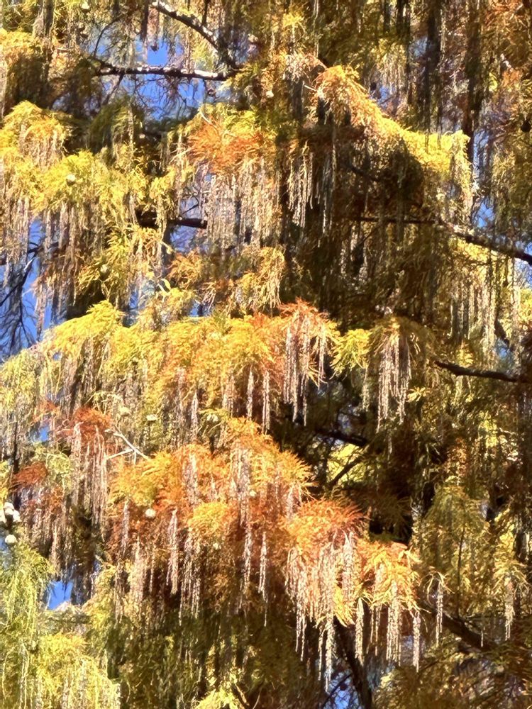 様 高木なので、iPhoneズームが限界です〜最初メタセコイアかなぁと思っていたが、ラクウショウでした💦