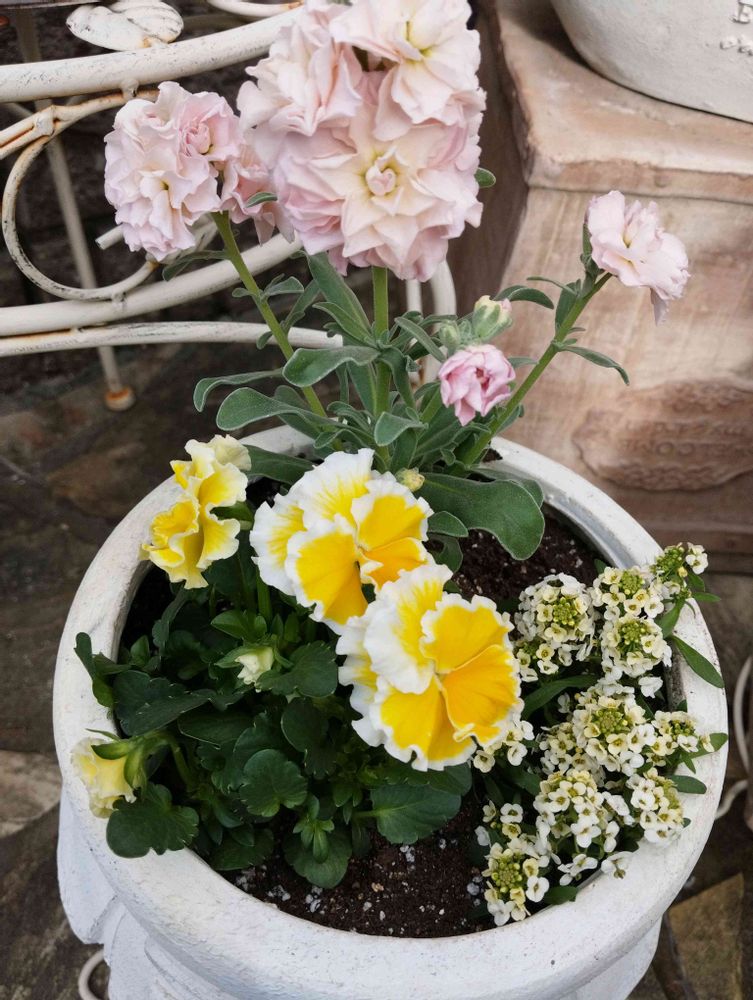 久しぶりの園芸店で、テンションがあがり好きなお花をお迎えしたものの、どれとどれを組み合わす🤔となった寄せ植え1号です✨