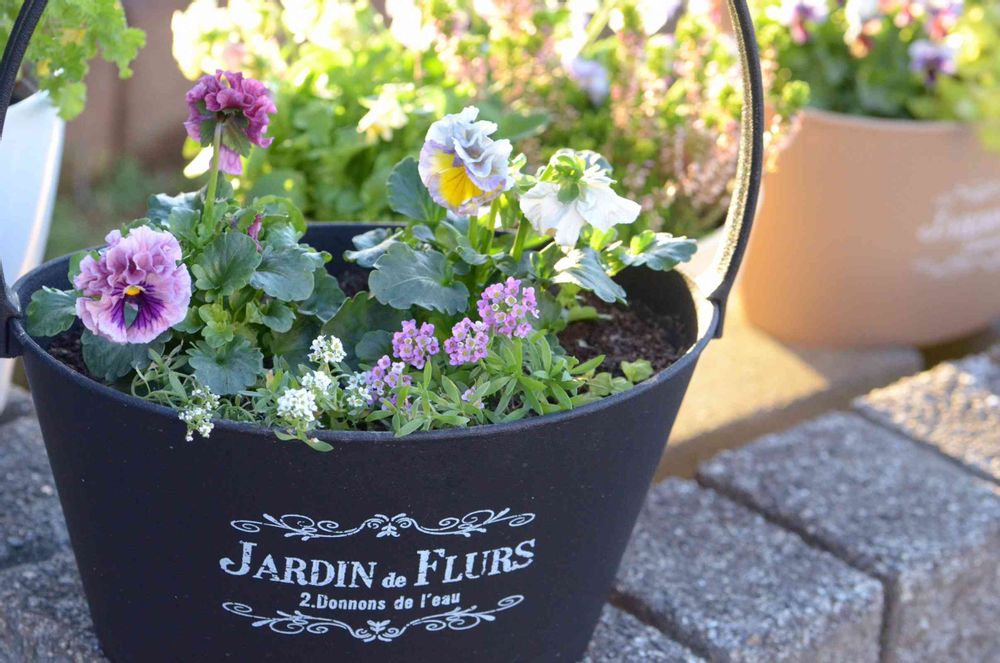 黒色のプランター、しまってカラフルなお花を引き立ててくれますね♡♡♡