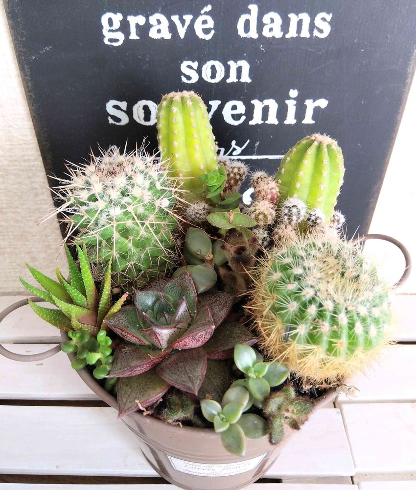 サボちゃんと大和錦さんのコラボがとってもカッコいい寄せ植えですね✨