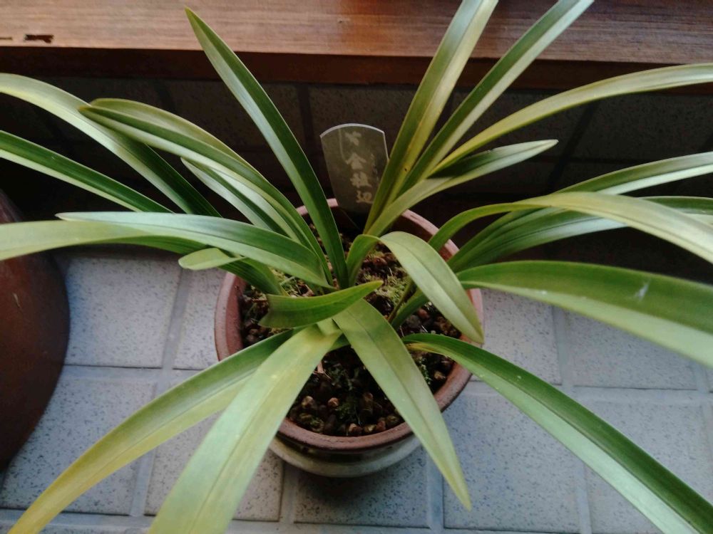 寒くなってきたので、鉢植えのキンリョウヘンを室内に入れました。