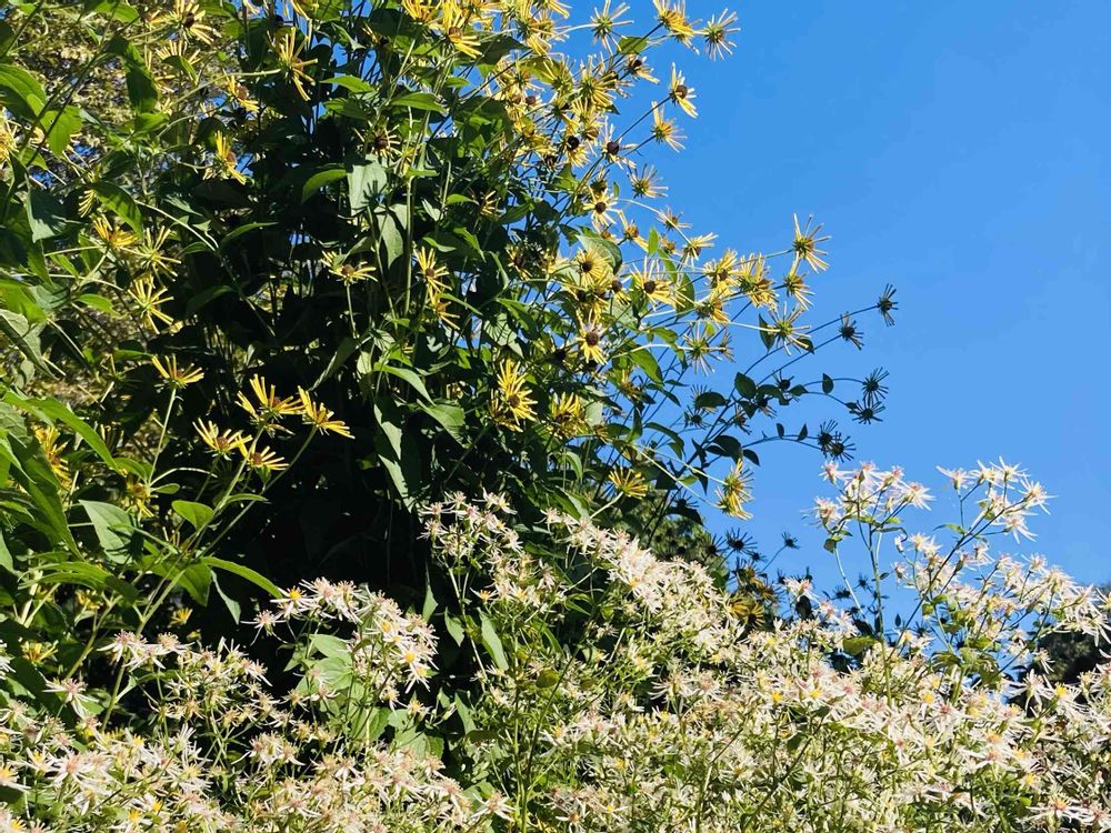 黄色は菊芋の花、白色はゴマナの花かな~😀纏まると綺麗😊