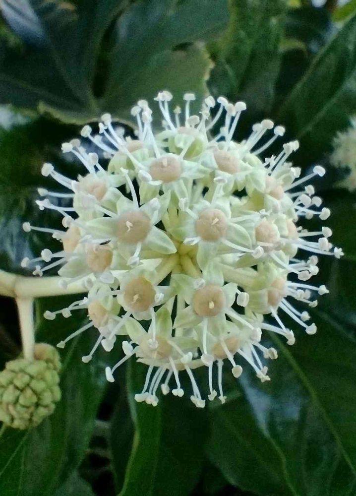 ヤツデの花を見ながら会社に、今頃はお仕事中なのかな❗️