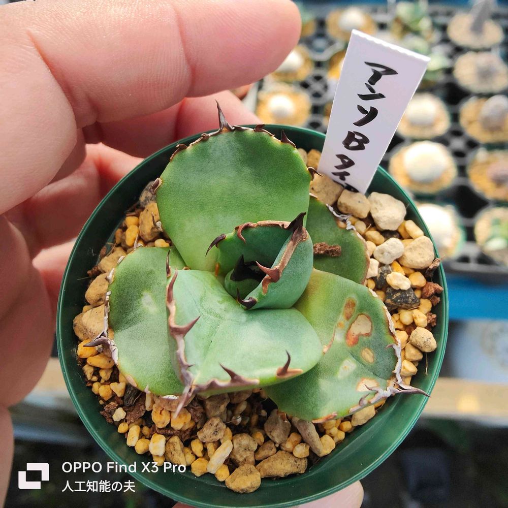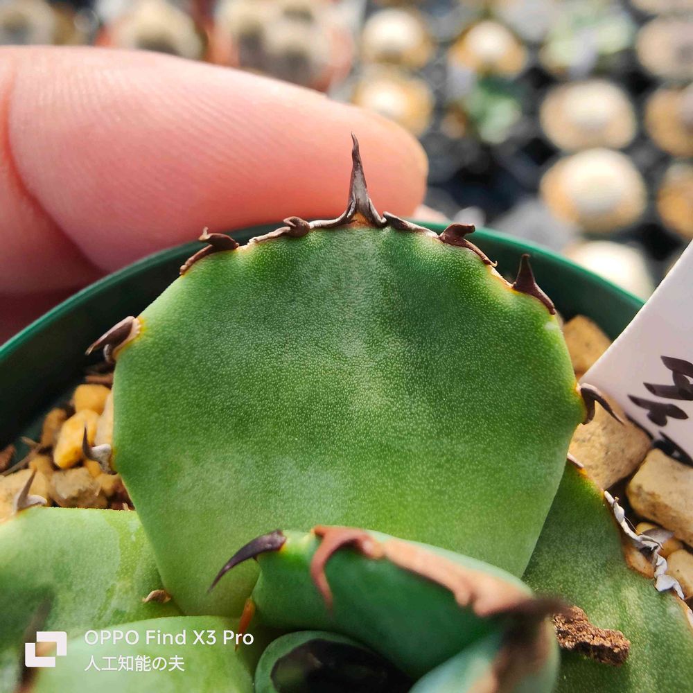 だいぶ前に投稿した実生 #アガベ #チタノタドワーフ #ラウンドタイプ の #カキコ が少し大きくなって、特徴的な葉が展開してきました♪
