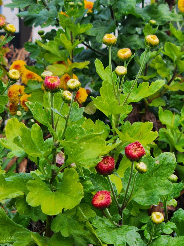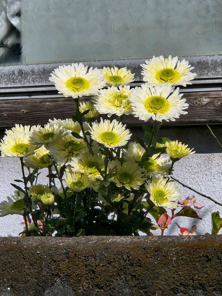④職場近くの散歩道、民家の高い塀の上から覗いてた中輪キク✨️