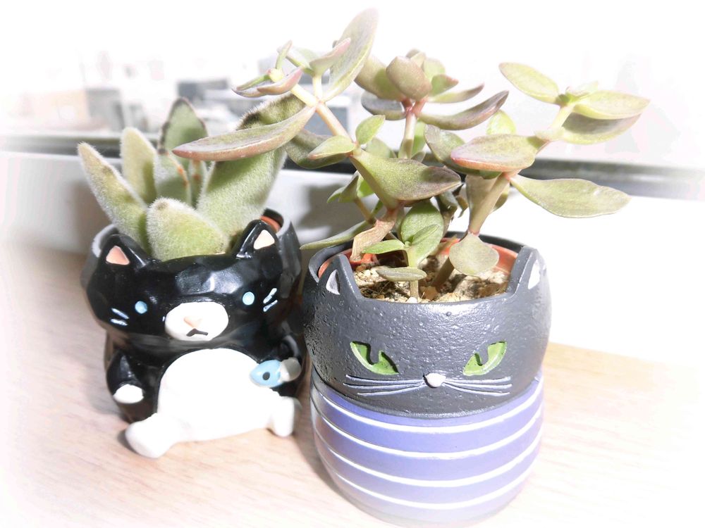 左はウサ耳祭りでご披露した、黒猫鉢に月兎耳さんが入った、ウサとニャンに目のないワタクシの心をわしづかみにした一品😆