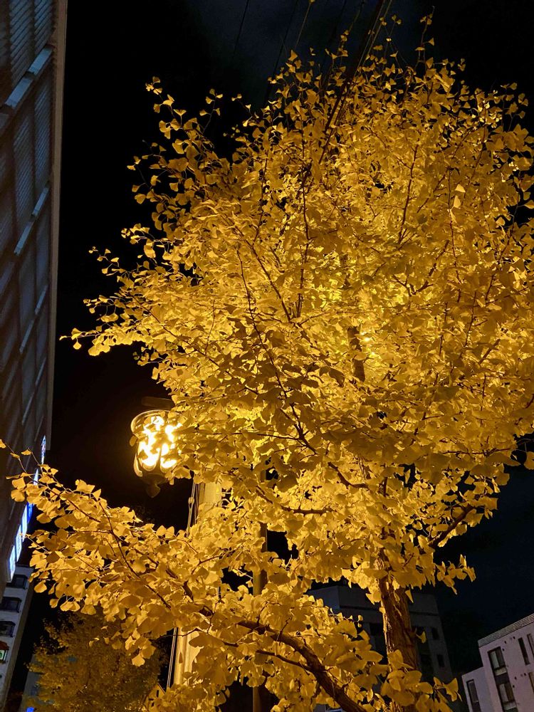 イチョウの葉っぱがライトで金色に〜✨✨✨😍