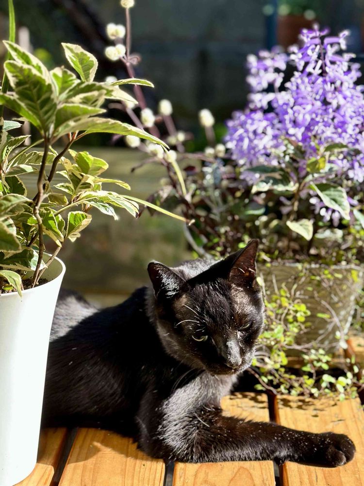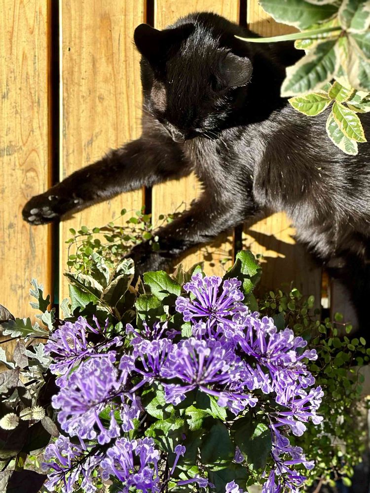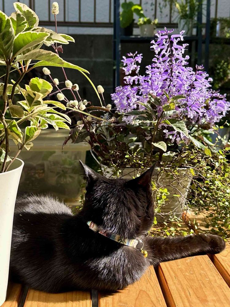 咲き誇り中の[プレクトランサス]と、日向ぼっこのくう🐈⬛