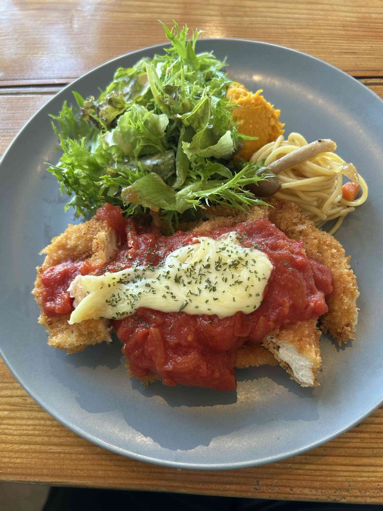 お出かけ先,ユリオプスデージー,恵那鶏ムネ肉トマトソース掛けランチの投稿画像
