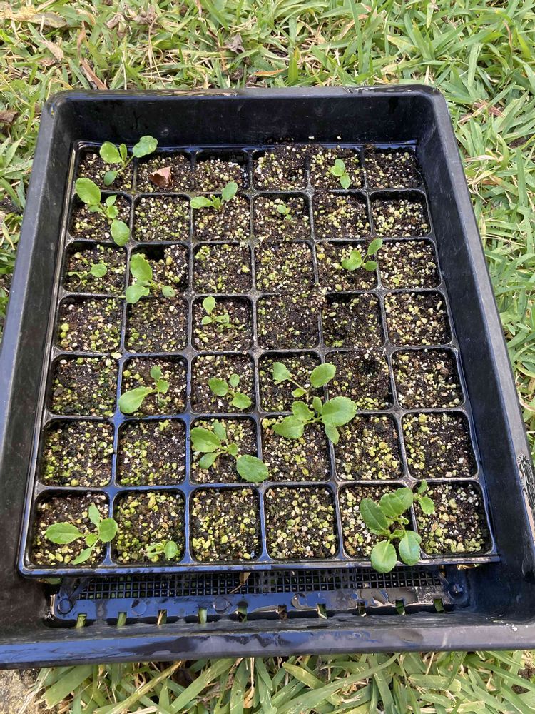 10月初旬に採り蒔きしたエリンジウムが育ってきました。発芽率、40%程度。そろそろ鉢上げするか、植え付けしなくては。