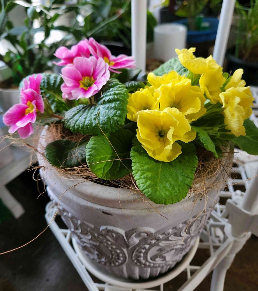 昨年買っておいたアンティークな鉢にヒラヒラほわほわの花びらがピッタリな感じ✨どちらも引き立て合って☺️