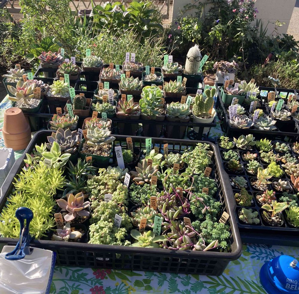 小さいポット苗が各種100円からあり、他にも珍し目の多肉もいろいろあり、素敵な寄せ植えもあります💕