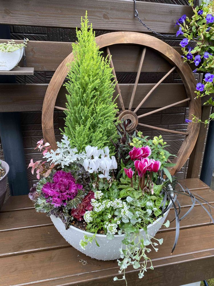 ガーデンシクラメンと葉牡丹を入れると一気に冬っぽくなります⛄️