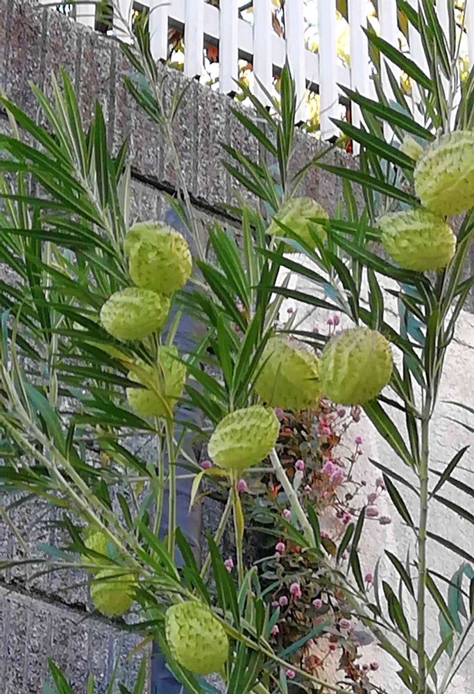 散歩お休みしましたがその前のご近所さんの風船トウワタ🎈可愛い小さな花から想像できない大きな実ですね🤗