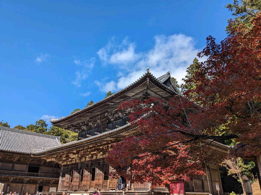書写山圓教寺の紅葉まつりに行って来ました🍁ロープウェイに乗り降りた先から更に歩いて本堂まで20分程今年は紅葉がイマイチな様で…赤いコもいればまだまだのコも🍁でもお天気が良くて☀マイナスイオンを浴びながら山登りしてきました😊