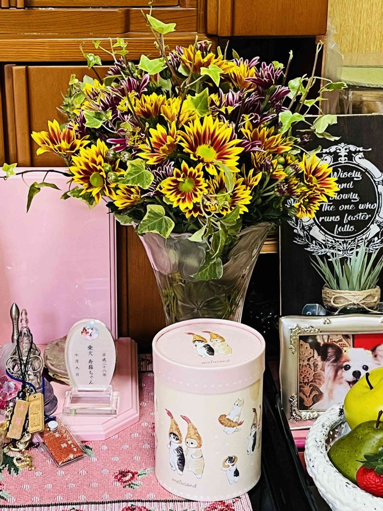 アイコンの中のパピヨンは寿羅(ジュラ)と言って、19歳でお星様になりました。18歳近くまで、いつも一緒にお花を見に行って楽しく暮らしていました😄