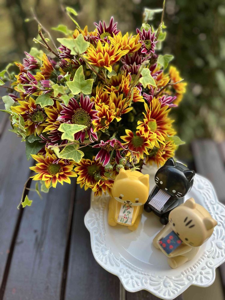 3️⃣ニャンテープと一緒に、ラウンドブーケ自立しています。