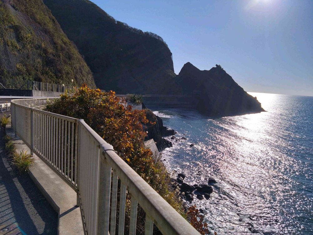 小針浜から海岸沿いの国道402号線を角田浜の少し先まで行き、奇岩を見てUターン。