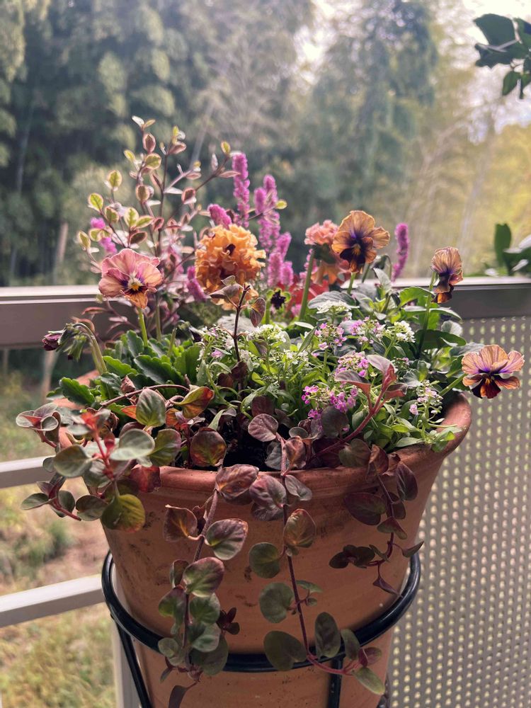 ローブドゥアントワネットとときめきビオラの寄せ植え
