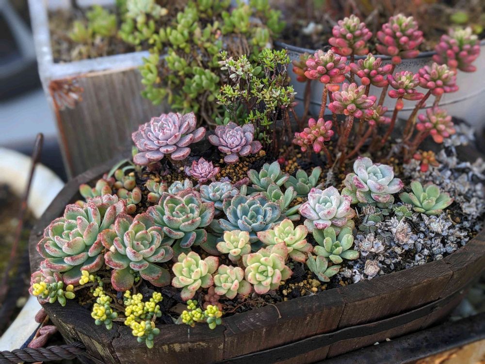 多肉植物素敵な寄せ植えですね。紅葉して変化楽しめます。私もこんなのやってみたい可愛いですね。
