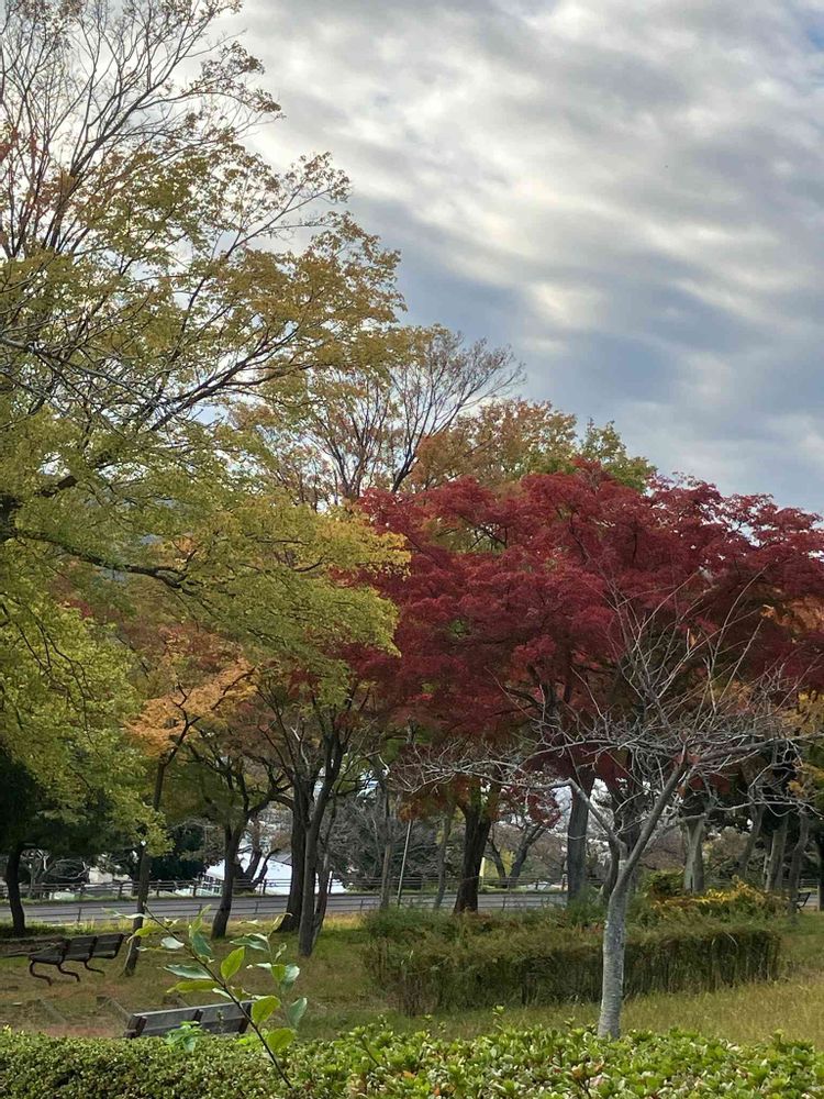 来ていました😁子ども達の声を聞きながら上に登って行くと途中で真っ赤に紅葉したもみじ🍁にで出会いました☺️見渡してみるとまだ紅葉🍁してないもみじもありステキな景色でした🙌