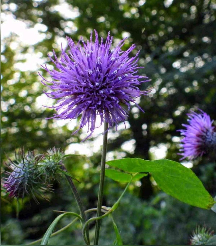 紫色のアザミの花が晩秋の木漏れ日に綺麗です💜🌿