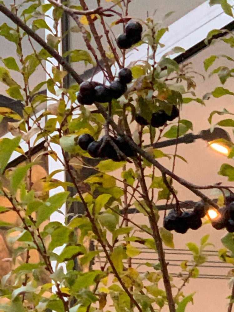 黒アロニアの実沢山なっているのに、取らないの。勿体ないですね😊
