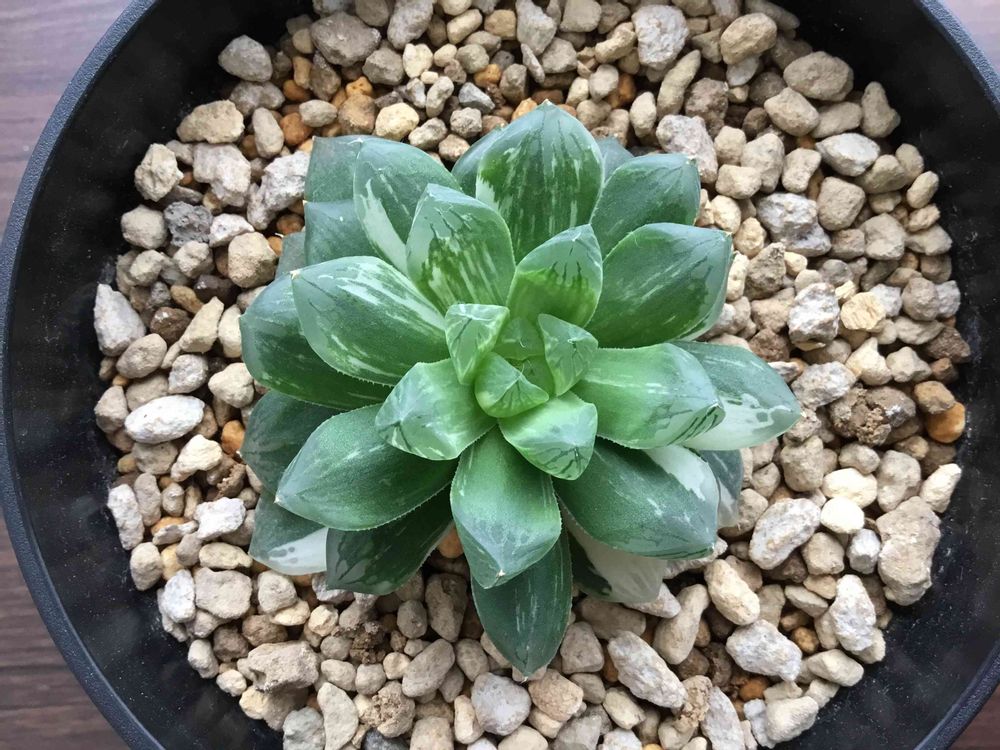 初代ハオルチアマリンですが、だんだん新芽🌱に斑が無くなってきました😳。斑は気まぐれ〜😆✨