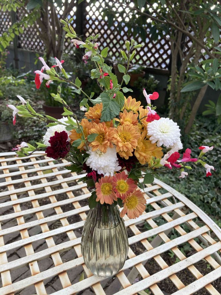 3️⃣昨日の菊の残りと剪定したチェリーセージ🍒