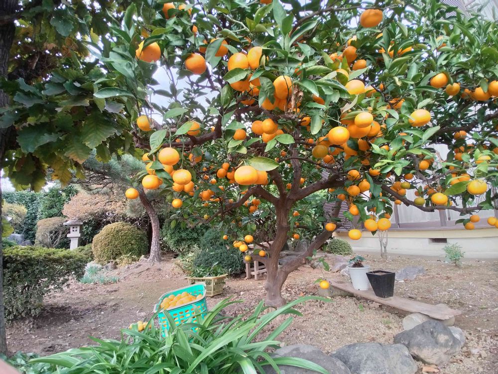 今年はミカンが大豊作。枝が折れそうで怖い。