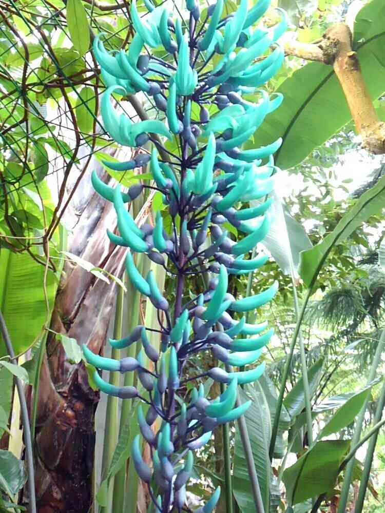 緑の桜を見たフラワーパークの敷地内、温室にあったヒスイカズラです。見る度に、この色の成分は何だろうと気になります😃アントシアニン?(適当)