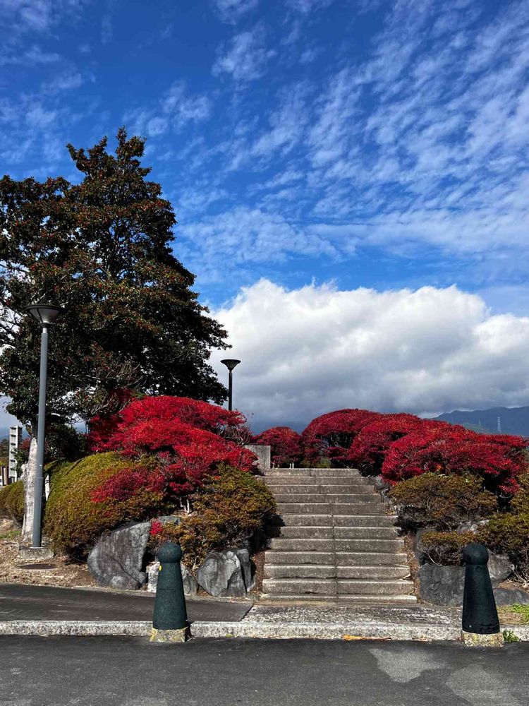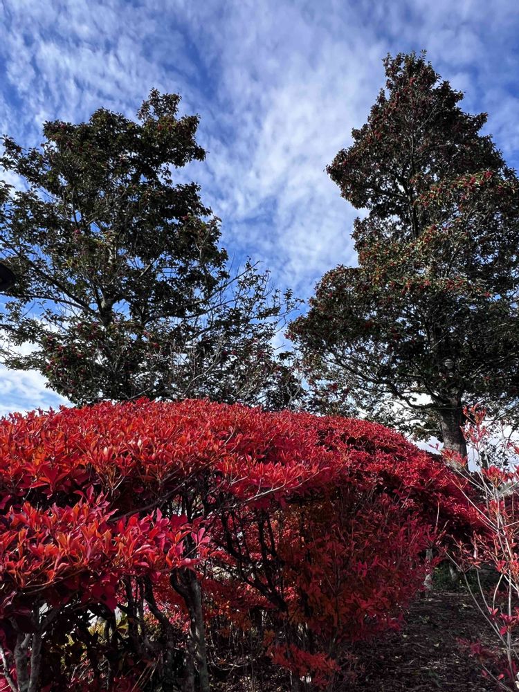 真っ赤な紅葉と青い空 綺麗ですね❤️❤️昨夜は雨でしたか 西側は雨が無く 水不足です💦 田舎にでも裏から出ていた湧水も一滴も出ません 井戸があり助かっています😅