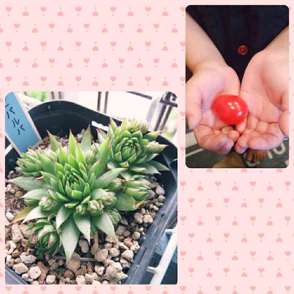 昨日トマト🍅収穫して食べたよー✨やっぱりちびっ子は無理だったけど口に入れた分は飲み込んだから褒めまくった😍‼️笑