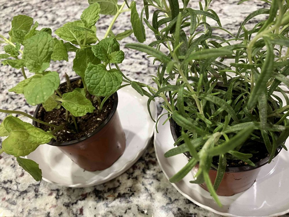ミントとローズマリー。スーパーで見つけました!ローズマリーは、サンクスギビングの料理に使います♪いい香り🥰