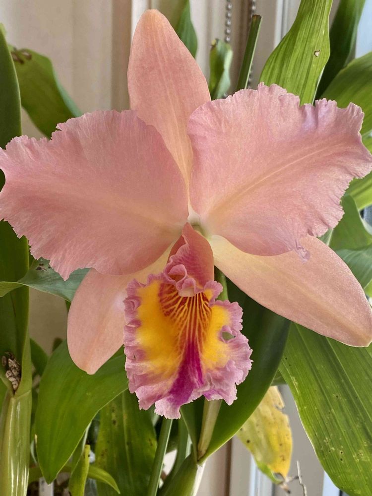 かわいいカトレア ジョージキング セレンディピティがしっかり開いてサーモンピンクになってきました☺️💕