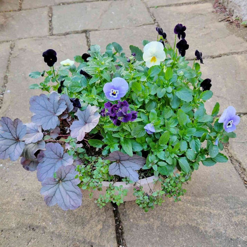 10月11日に、今年のはじめてビオラの寄植えを作って、その後。