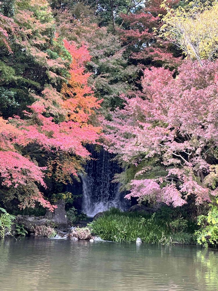 大阪の吹田万博記念公園に行ってきました☺️1️⃣園内を走る森のトレインです🎵2️⃣3️⃣4️⃣もみじの滝です🎶とても綺麗でした🍁