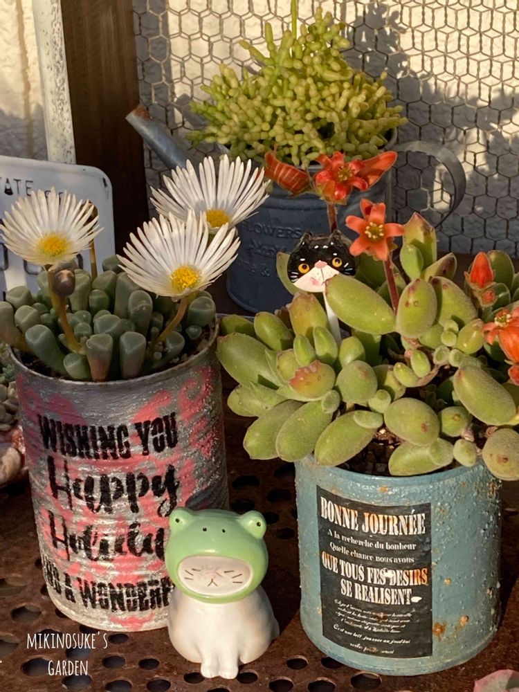 かっきーチャンのリメ缶の子だけいち早く咲いてるんです😆